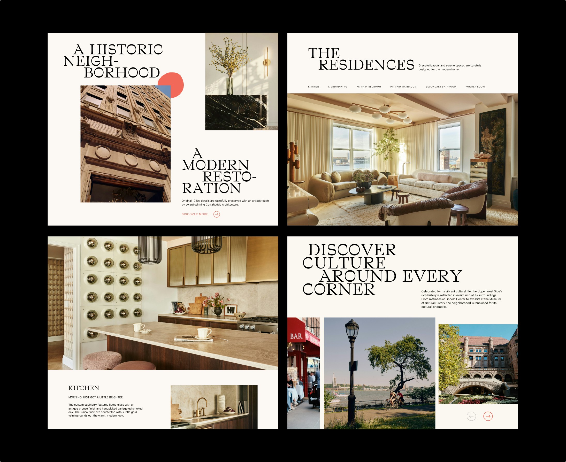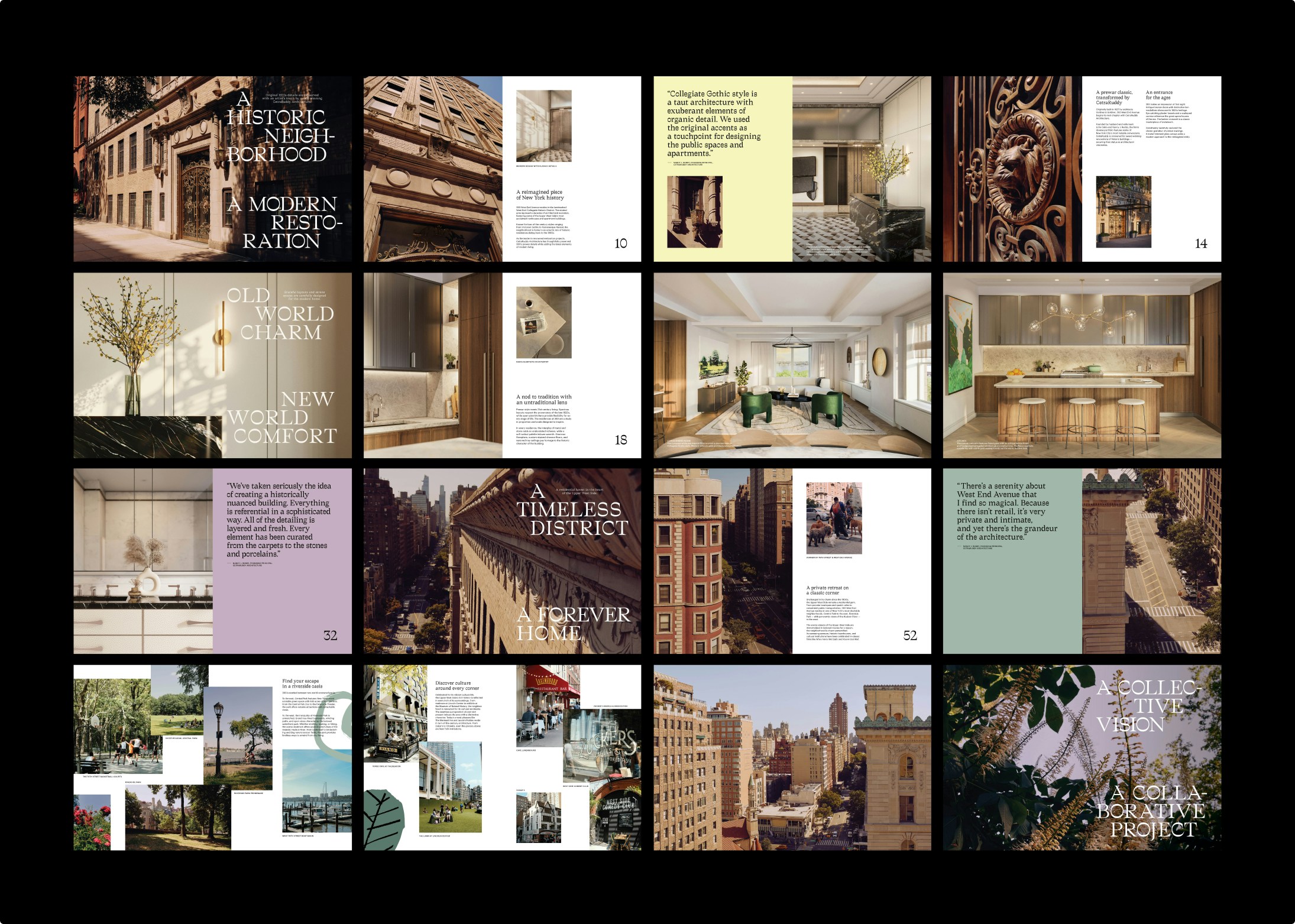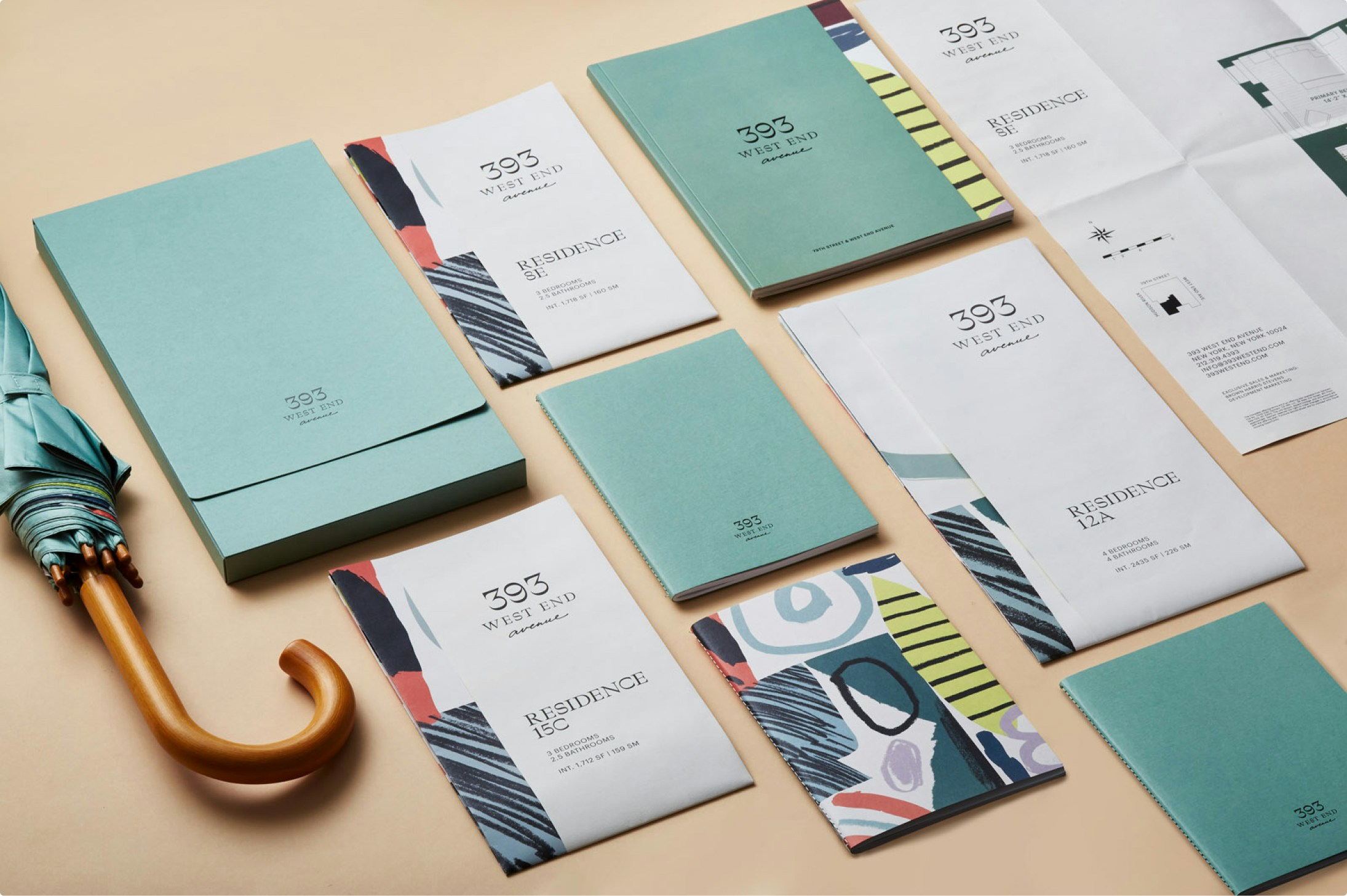 A historic, landmark building on the Upper West Side, 393 West End Avenue needed a brand that would attract a new generation of families and homeowners. Our process was focused on developing a brand that could resonate with the Upper West Side neighborhood — the rich history, the culture, the vibrant energy. With this in mind, we crafted a unique brand identity starting with a bold and colorful illustration paired with an elegant and restrained logo and typeface.