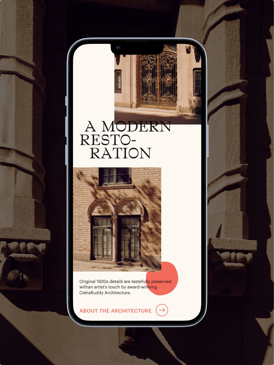 Sophisticated but with a strong personality, the brand was incorporated across website, photography, renderings, marketing collateral, advertising, and social media.
