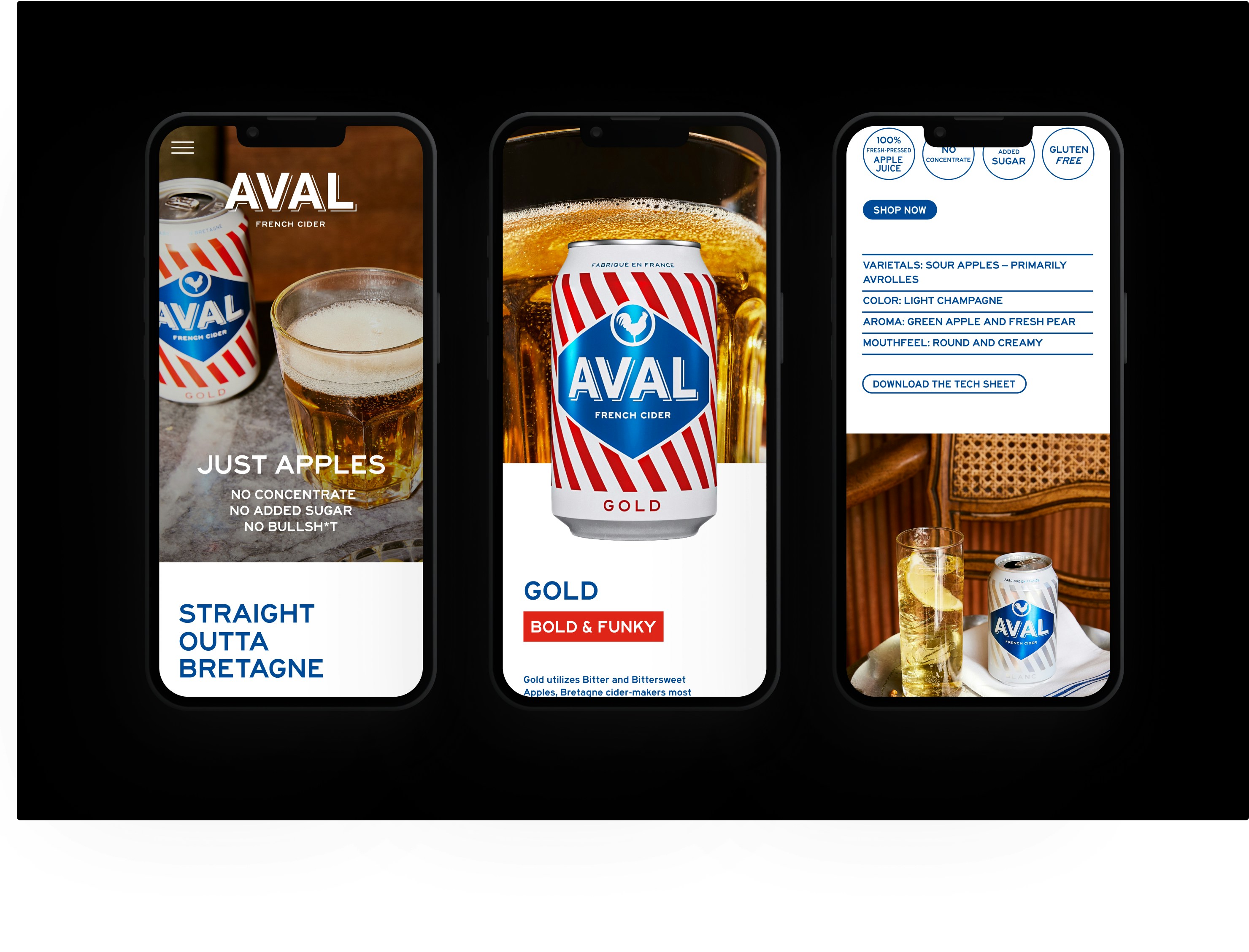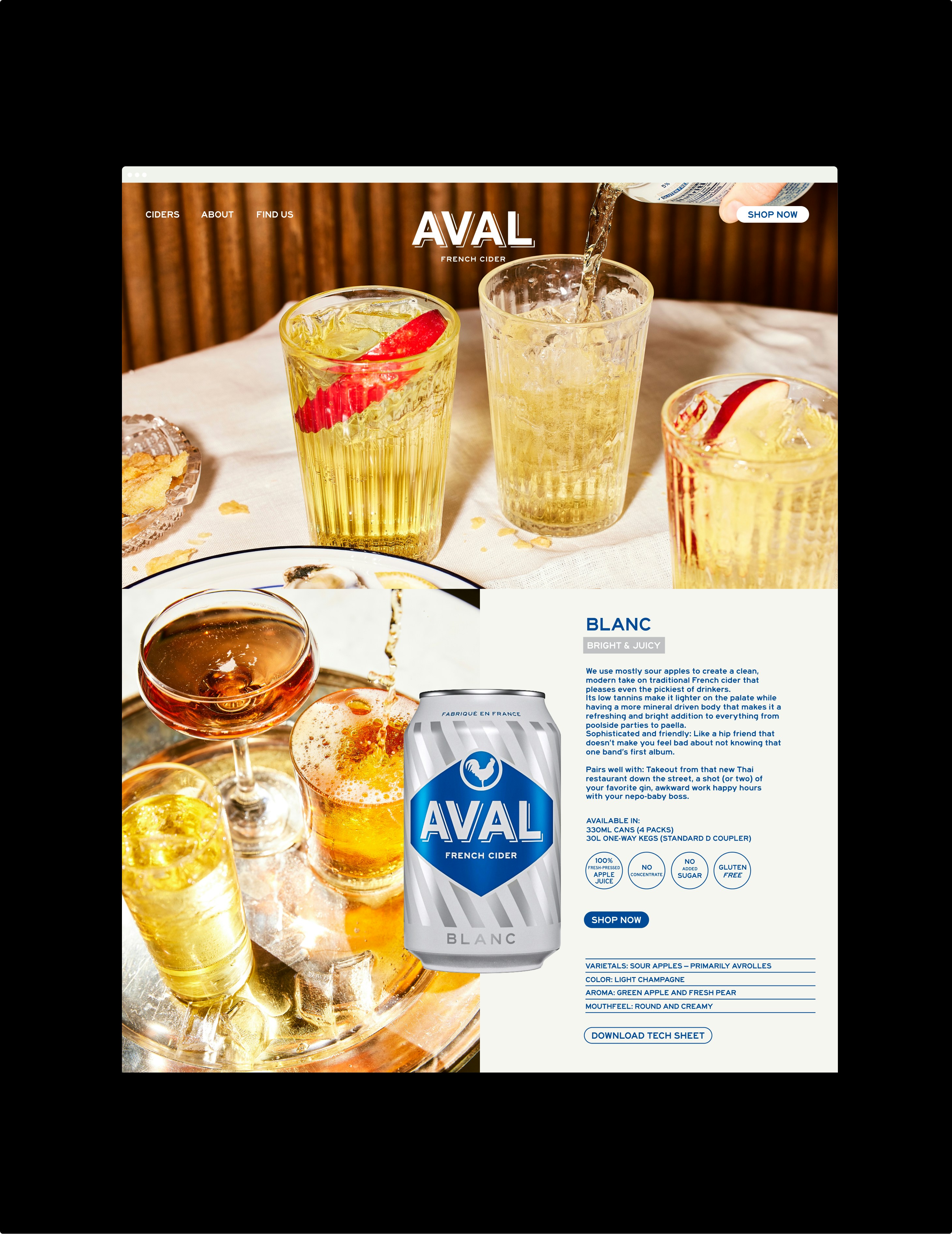 AVAL, the first modern French cider brand to enter the U.S. market, is rooted in the centuries-old tradition of French cider making while embracing modern innovation. The brand’s goal is to strike the perfect balance between heritage and contemporary appeal. AVAL approached us to refresh their existing cans and overall branding.